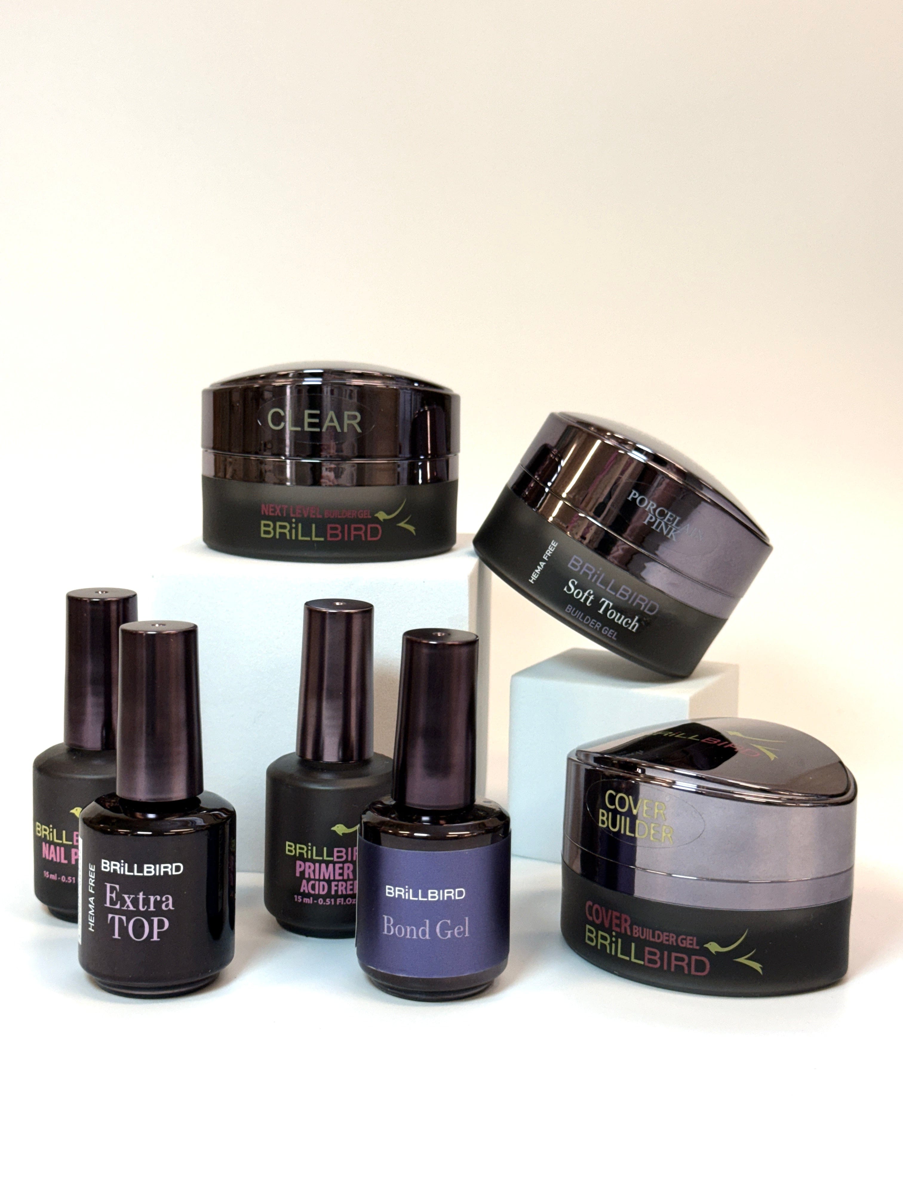 Rutinen bygger videre på en trygg prep og base, kombinert med flere builder-alternativer som egner seg til ulike arbeidsmetoder, strukturer og preferanser. Dette gjør Pro Routine ideell for deg som ønsker mer kontroll i oppbyggingen, enten du jobber med naturnegl, forsterkning eller mer teknisk formarbeid.