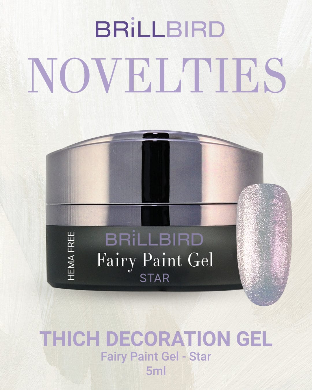 Star er en fortryllende lilatonet dekorasjonsgel med en nydelig satengaktig glans. Den reflekterer lyset på en magisk måte og gir neglene et mykt, men iøynefallende uttrykk – perfekt for kreative design med dybde og eleganse.